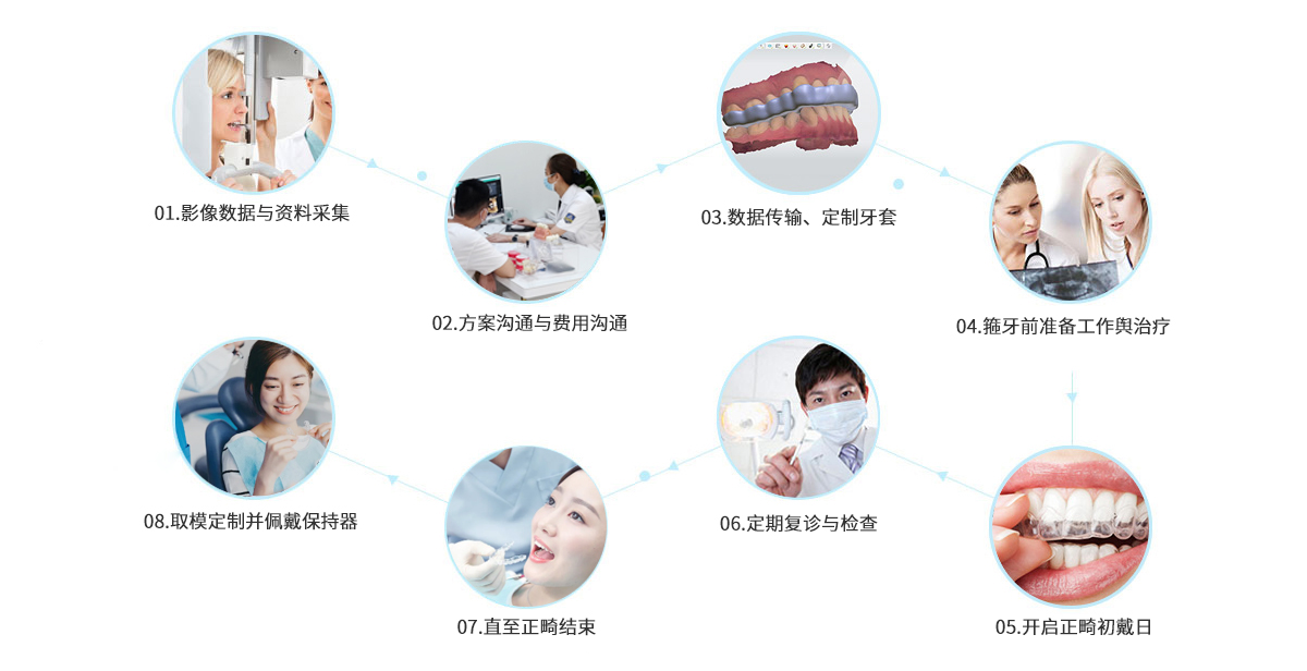 将临床口腔正畸学、颌面美学、大数据晕计算、计算机叁维建模、高分子材料学、3D高精度打印结合,通过数字化全景、3D口扫、可视化方桉设计、3D动画元及3D隐形牙套打印和托槽打印等,实现了牙齿向目标位置的移动,实现减少複诊次数,缩短近30%矫治时长。